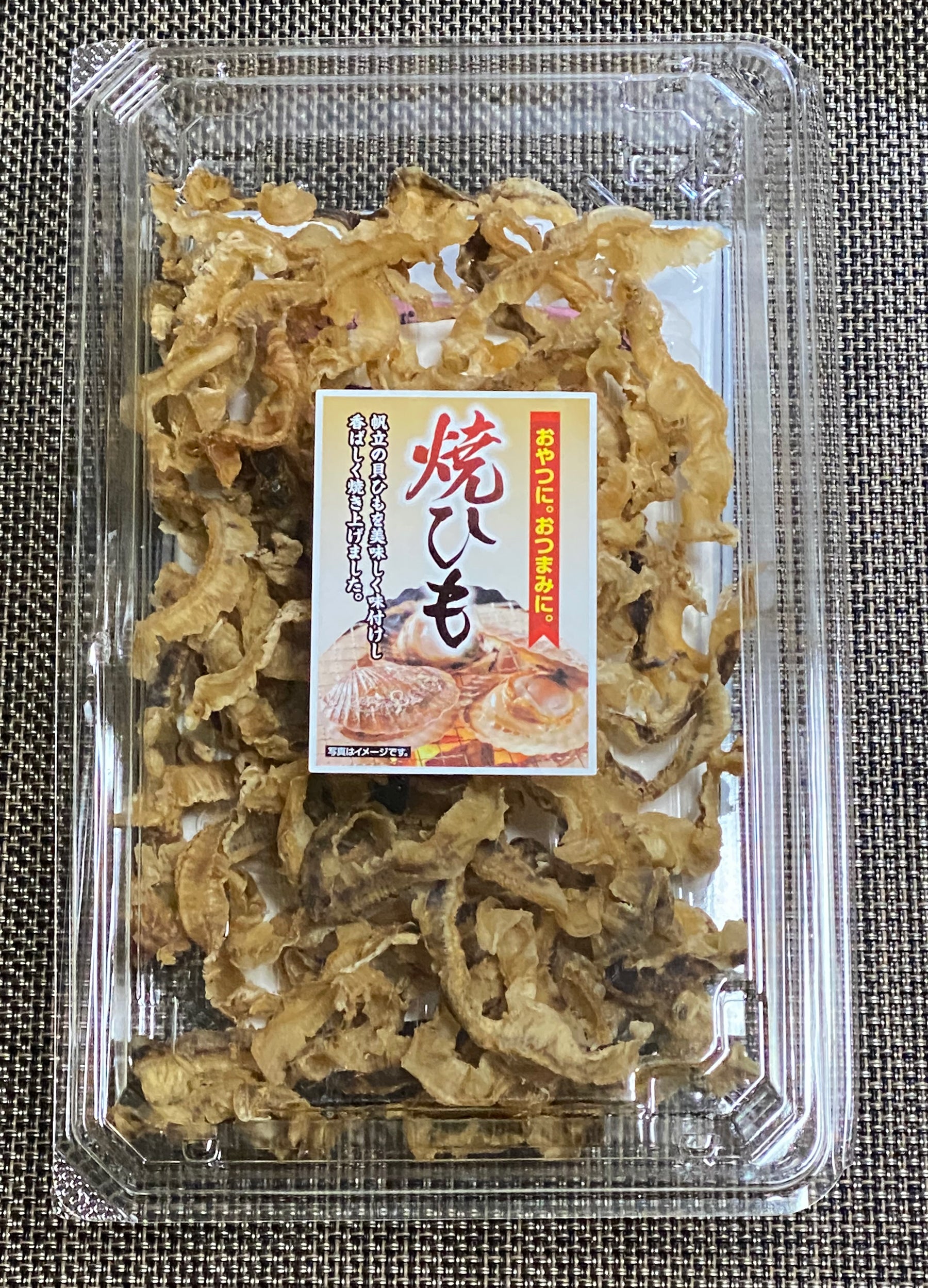 原材料名:ほたて貝ひも(北海道産)、砂糖、食塩、香辛料/ソルビット、調味料(アミノ酸等)、pH調整剤